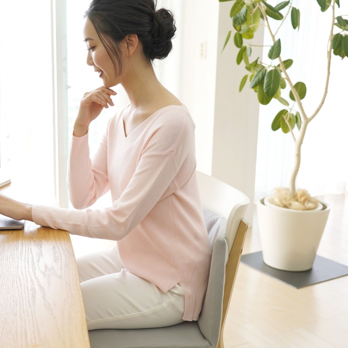 椅子に触れる面積が増えるので、体圧が分散し、腰への負担がやわらぐのも特徴の一つ。体を横倒れしにくくしたり、呼吸が深くなりやすい姿勢を保ちやすくなったりすることもあり、デスクワークの疲労感を解消したい方にもおすすめです。椅子の上に置いて使うことを想定しているので、すでに自宅にあるソファや座椅子とあわせてお使いいただけますよ。